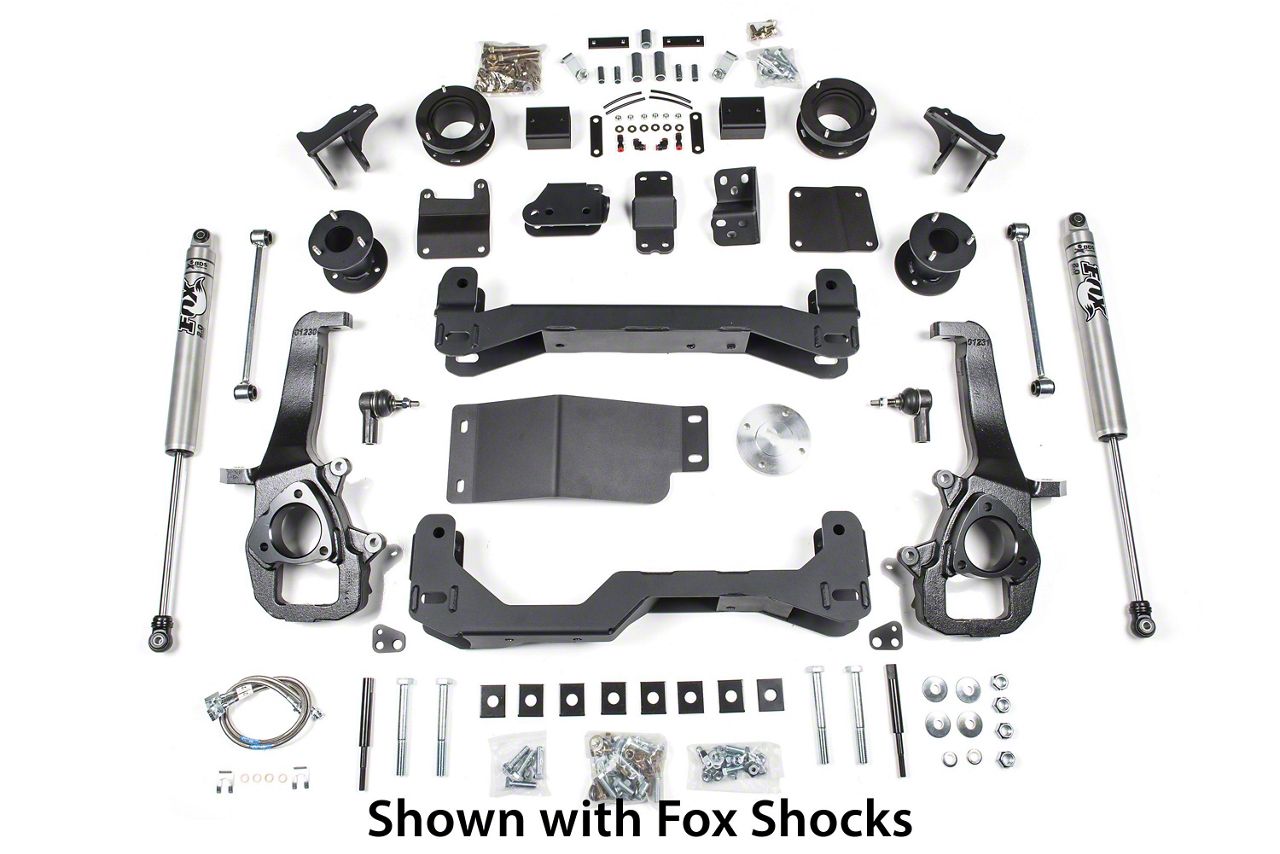 Racer-Caliber Shocks. The BDS 4-Inch Suspension Lift Kit includes two FOX 2.0 Shocks which are designed for smoother driving and reduced turbulence, comparable to the efficiency of racing-grade vehicle shocks thanks to their isolated oil chambers and finely charged piston bodies.