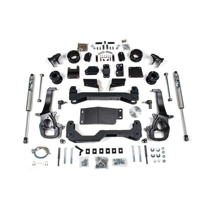 High-Performance Rear Fox Shocks. This suspension lift kit is designed to swap out your factory rear dampers with a pair of high-performance Fox shock absorbers. These rear shocks are engineered to provide your truck with a quicker damping response, solid handling feel on the trails, and a firm but smooth ride quality on the highway. This is accomplished via monotube pressurized nitrogen gas charged to design and internal floating piston technology. Moreover, these shocks feature 2-inch wide all-aluminum shock bodies for outstanding heat dissipation that greatly reduces the chances of shock fade.
