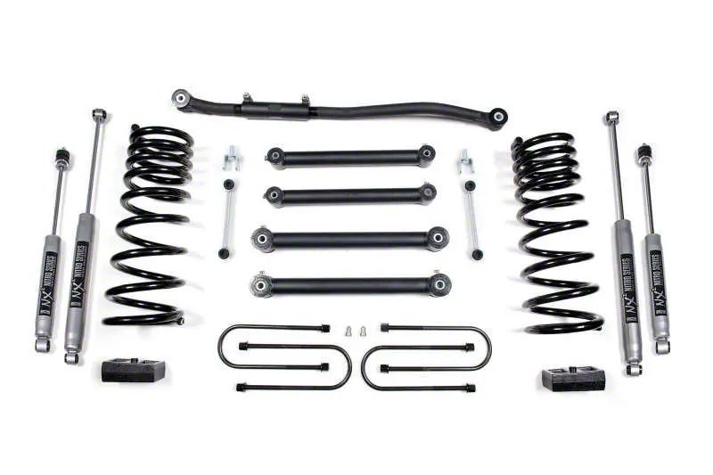 Installation. The lift kit is designed for bolt-on installation, using a direct replacement setup that requires no extensive fabrication. With all hardware and brackets included, the adaptable configuration ensures a smooth, secure installation process for improved stance and suspension articulation.