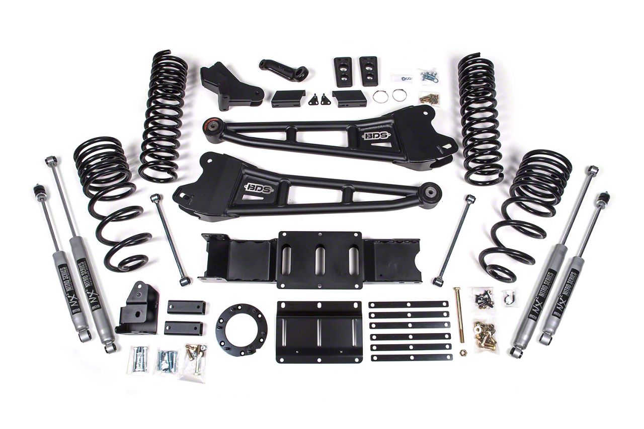 Application. The BDS 4-Inch Radius Arm Suspension Lift Kit with Rear Springs and NX2 Nitro Shocks is compatible with 2019-2026 4WD 6.4L RAM 2500 models without Air Ride, excluding Power Wagon.