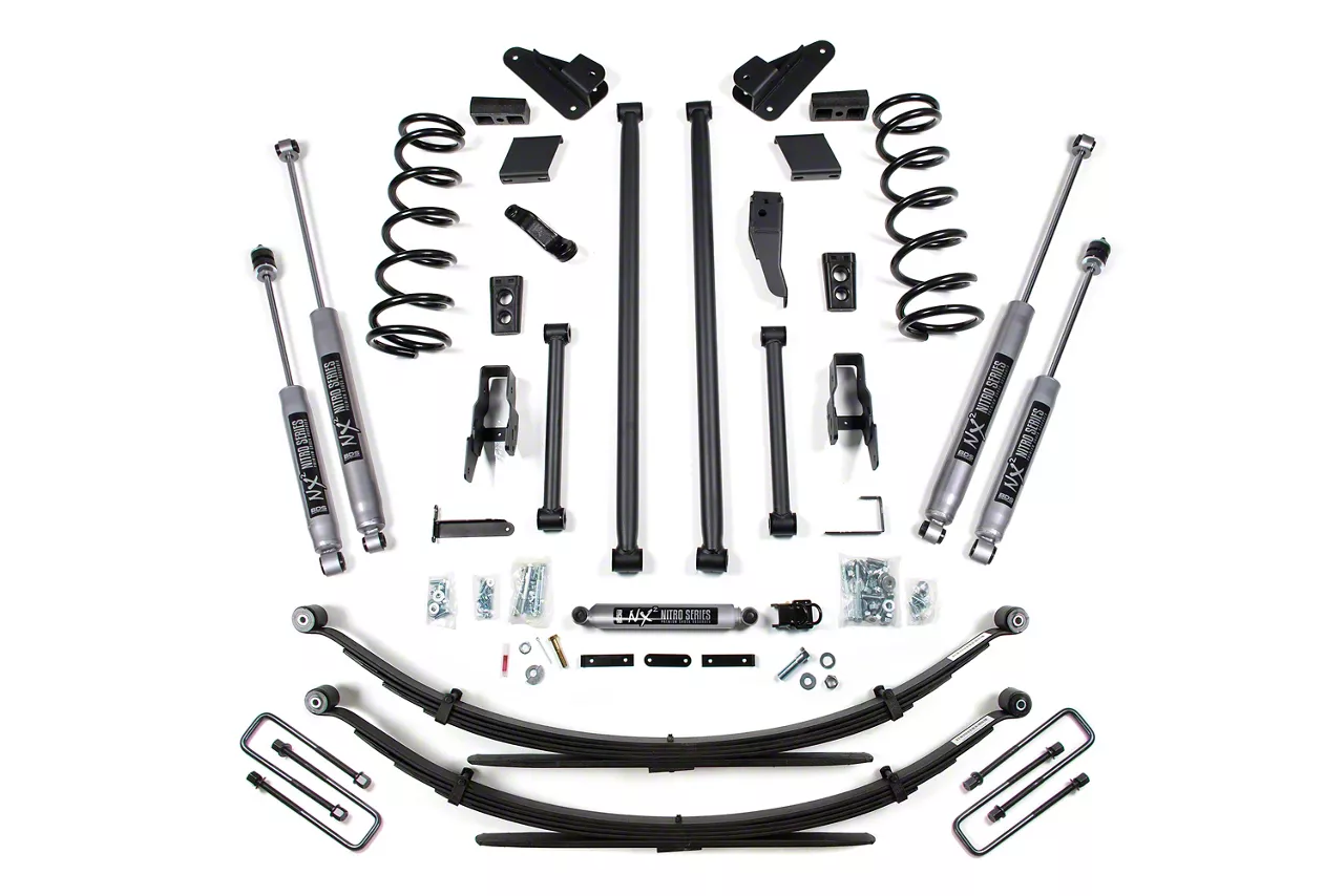 Application. This BDS 4.50-Inch Long Arm Suspension Lift Kit with Rear Leaf Springs and NX2 Nitro Shocks fits 1994-1999 4WD RAM 2500 models.