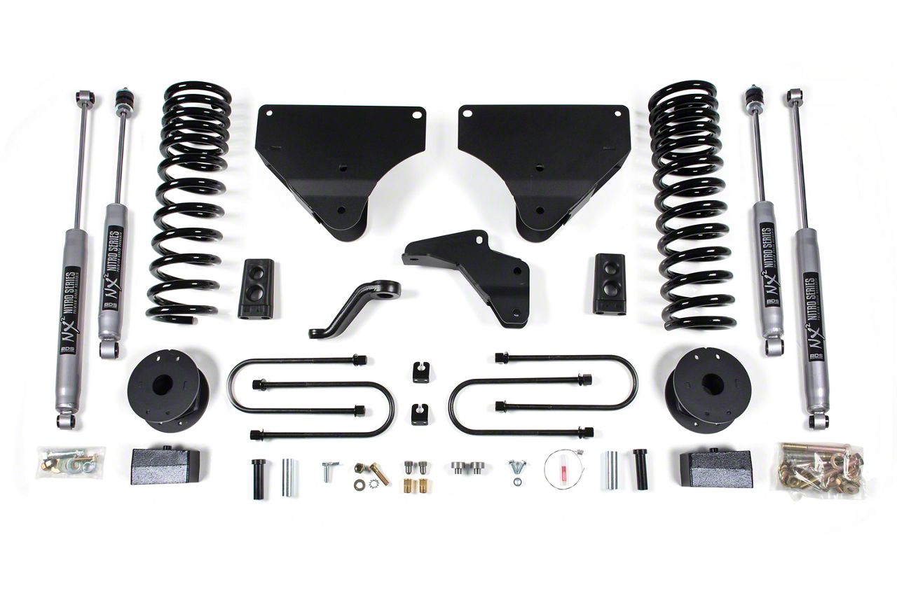 Advanced Suspension Upgrade. The BDS Radius Arm Suspension Lift Kit is specifically engineered to enhance your 2014-2018 4WD 5.7L or 6.4L Dodge RAM 3500 with Air Ride. This comprehensive kit provides a 4-inch lift for improved ground clearance and allows for the installation of tires up to 35 inches, delivering superior performance and control for both on-road and off-road applications.