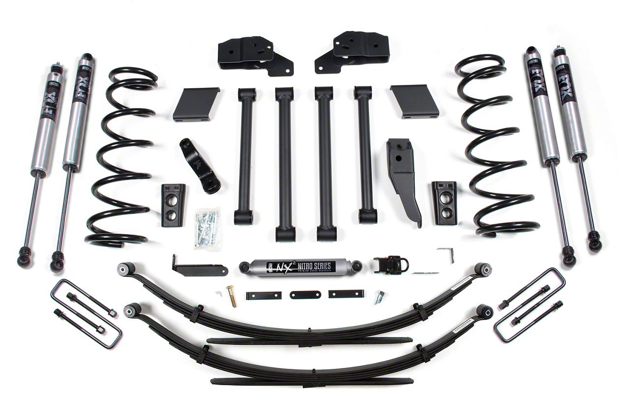 Application. This BDS 4.50-Inch 4-Link Suspension Lift Kit with Rear Leaf Springs and FOX 2.0 Performance Shocks fits 1994-1999 4WD RAM 3500 models.