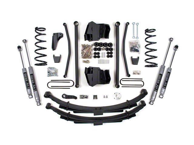 Application. The BDS 8-Inch Long Arm Suspension Lift Kit with Rear Leaf Springs and NX2 Nitro Shocks fits 2008 4WD 5.9L RAM 3500 models with Manual Transmission & Rear 4-Inch Axle.