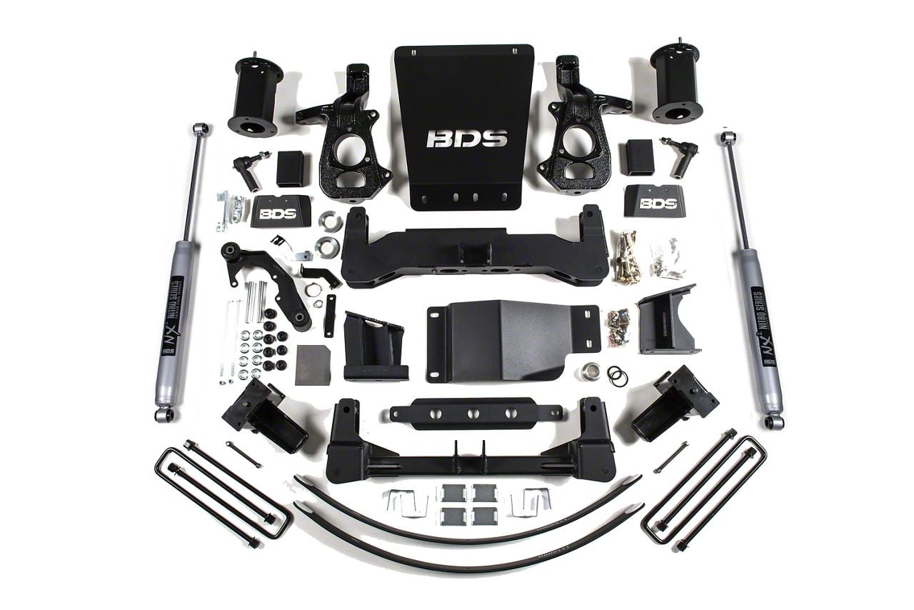 Unmatched Ground Clearance And Performance. The BDS 8-Inch Suspension Lift Kit transforms your Sierra 1500 by providing significant ground clearance for tackling challenging terrains. Equipped with rear lift blocks and NX2 Nitro Shocks, this kit enhances stability, improves off-road performance, and accommodates larger tires for a bolder stance.