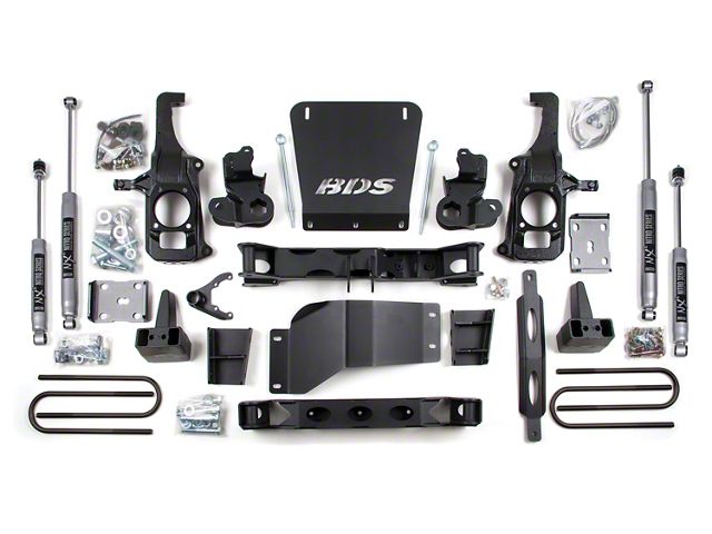 Construction and Appearance. Crafted from high-strength steel, this BDS suspension kit is built to endure extreme conditions without compromise. Each component is finished in a textured black powder coat that resists corrosion and blends seamlessly with your truck’s rugged aesthetic. Premium-quality brackets and hardware are included for long-lasting performance.