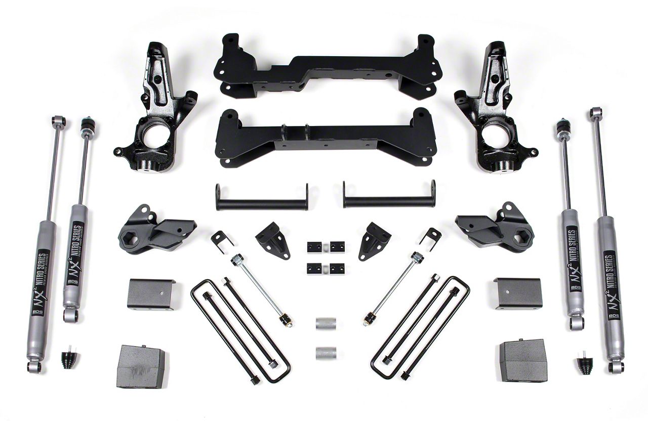 Advanced Suspension Performance. The BDS 7-Inch Suspension Lift Kit with NX2 Nitro Shocks offers a dramatic lift for your GMC Sierra 2500 HD, providing unmatched ground clearance and the ability to fit 37-inch tires. Designed for off-road enthusiasts, this kit enhances the vehicle's capabilities while maintaining excellent on-road handling.