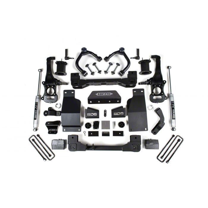 Performance. This BDS 4-Inch Suspension Lift Kit improves your Silverado's ability to drive off-road by raising the vehicle higher off the ground and using the NX2 shocks. If you're going on rough trails, bumpy grounds, or steep hills, the better suspension parts make sure you have a smoother and easier ride.