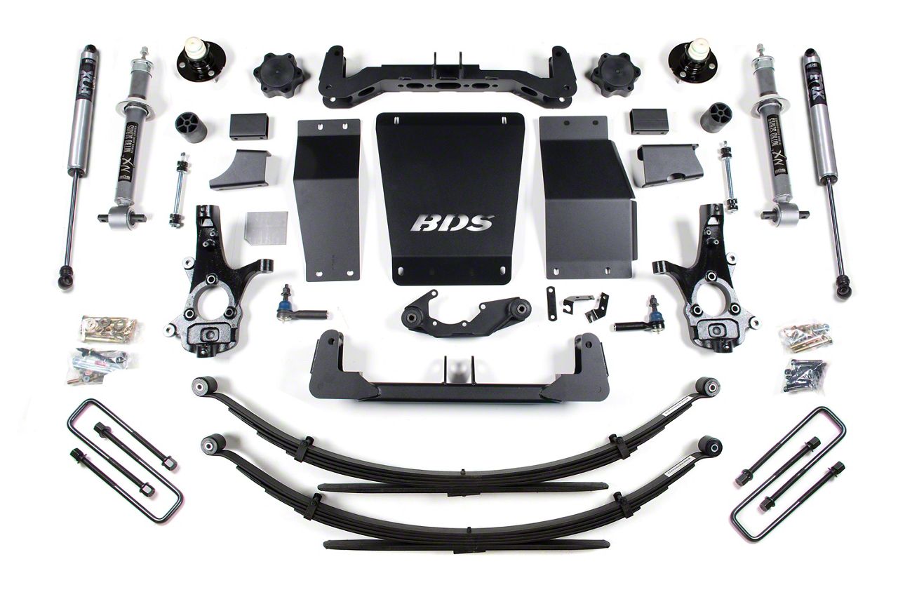 Application. This BDS 6-Inch Suspension Lift Kit with Rear Leaf Springs and FOX 2.0 Performance Shocks fits 2014-2018 4WD Silverado 1500 with stock cast steel control arms.