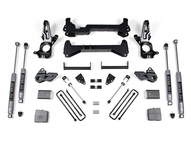 Construction and Appearance. Built from premium-grade materials, this lift kit includes nitrogen-charged NX2 Nitro Shocks designed for reliability and efficiency. Every component is rigorously tested to ensure long-lasting durability and dependable performance. Its rugged finish complements the heavy-duty design, enhancing the overall appearance of your Chevrolet Silverado.