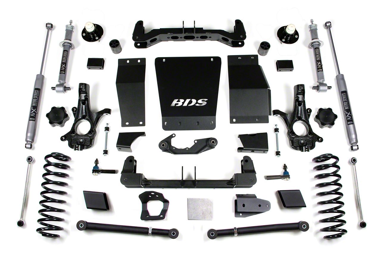 Application. This BDS 6-Inch Suspension Lift Kit with Rear Coil Springs and NX2 Nitro Shocks fits 2015-2019 4WD Chevrolet Tahoe with Stock Cast Aluminum or Stamped Steel Control Arms and without AutoRide or MagneRide Models.