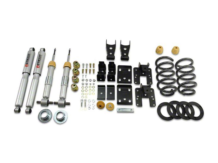 Perfect for Street Applications. The Belltech Lowering Kit with 1-2 inch Front and 4 inch Rear Lift is designed to provide an easy way to lower your truck’s ridge height. Installing this lowering kit gives your Silverado a sleek appearance that’s ideal for street applications. Additionally, the lowered center of gravity helps improve handling, especially when taking corners.