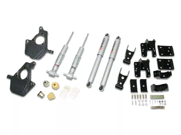 High Impact Upgrade. Belltech has built another incredible lowering kit for your GMC. The Belltech Lowering Kit - 2 in. Front / 4 in. Rear is a high impact product that allows you to drop your front height 2 inches and drop your rear 4 inches. As a matter of fact, you can stagger your heights in order to offset a downward rake of your factory design.