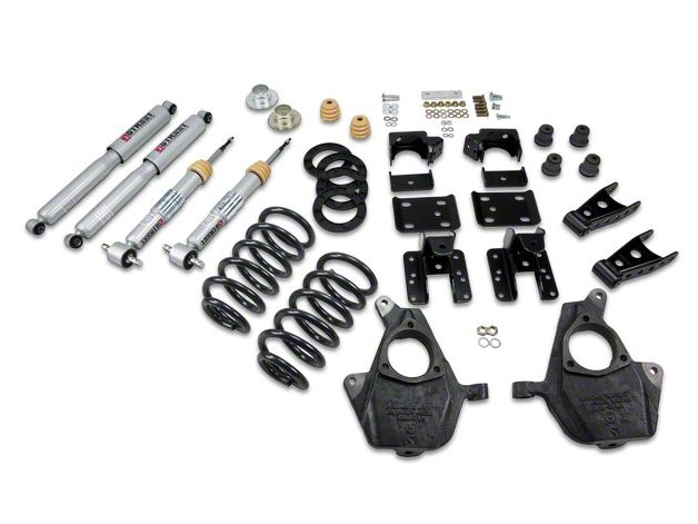 Incredible Performance. Looking for a lowering kit that you can stagger the drop heights? Then look no further than the Belltech Lowering Kit - 3-4 inch Front/5-6 inch Rear. This quality-built lowering kit allows you to lower your Silverado 1500’s front to an even height, or stagger your front a little higher to offset downward rake of your factory design.