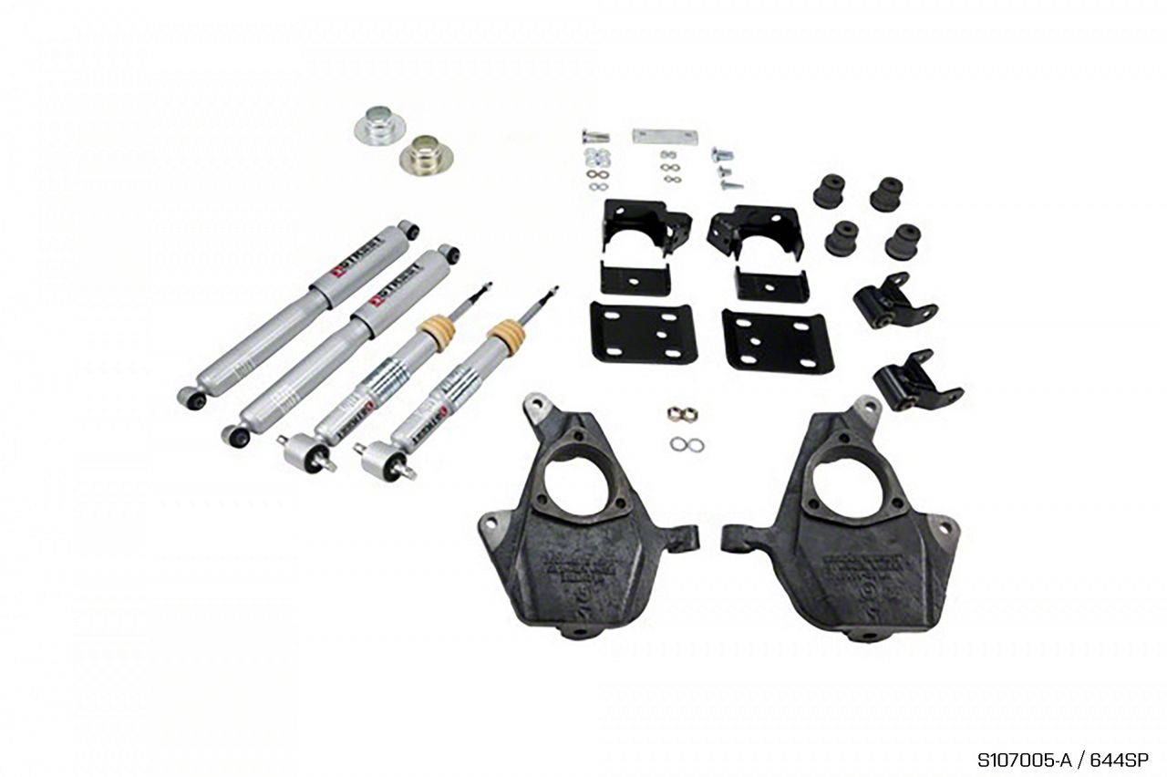 Cutting-Edge Innovation. Belltech brings you the Belltech Lowering Kit - 3-4 in. Front / 7 in. Rear. This incredible product gives you 3-4 in. of front drop and 7 in. of rear drop. The results are an aggressive look that keeps your Chevy’s original factory ride quality.
