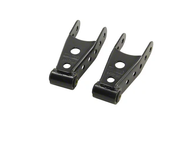 Convenient Rear Lowering Solution. Provide your F-150 with a convenient way to lower its rear with the Belltech Shackle Kit; 2-Inch Rear Drop. This shackle kit is engineered to relocate your truck’s leaf springs to efficiently lower its rear by 2 inches. By doing so, these shackles lower your truck’s center of gravity, improving handling performance. What’s more, these shackles are equipped with OE-style rubber bushings that effectively dampen vibrations. These factors make this kit ideal for daily driven trucks that also function as a weekend racer.