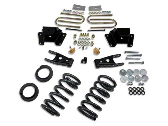 Low Rider Appeal. You'll love the finished look of your truck once you modify it with a quality Belltech lowering kit. The kit drops your ride down by as much as 1"" and gives you a sexy new look as well as a more stable ride that you can enjoy no matter what type of surface your driving on. The set makes use of a set of springs, and a shackle hanger combination that drops down the leaf springs of your vehicle and the front ride height for an overall drop of around 1"" in your truck. This isn't significant, but it will give you a sleeker and more aesthetically pleasing look overall. If you want to lower your truck down, this is kit is a solid way to accomplish that goal. Once you've modified your truck you'll be thrilled to show it off!