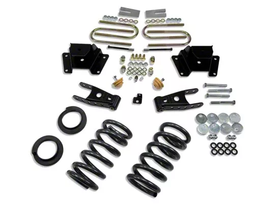 Low Rider Appeal. You'll love the finished look of your truck once you modify it with a quality Belltech lowering kit. The kit drops your ride down by as much as 1"" and gives you a sexy new look as well as a more stable ride that you can enjoy no matter what type of surface your driving on. The set makes use of a set of springs, and a shackle hanger combination that drops down the leaf springs of your vehicle and the front ride height for an overall drop of around 1"" in your truck. This isn't significant, but it will give you a sleeker and more aesthetically pleasing look overall. If you want to lower your truck down, this is kit is a solid way to accomplish that goal. Once you've modified your truck you'll be thrilled to show it off!