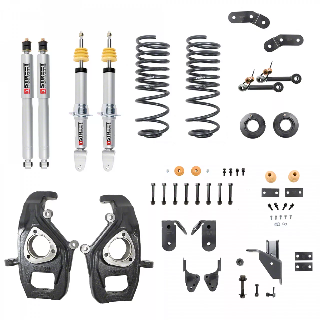 Heavy-Duty Aluminum Build. The Belltech Lowering Kit is built from high-quality anodized aluminum which ensures that the premium shocks and struts can withstand massive weight and exposure to rubble. The high-tension coil springs and coil-overs are coated in a glossy black powder paint layer for better structural durability and rust negation.
