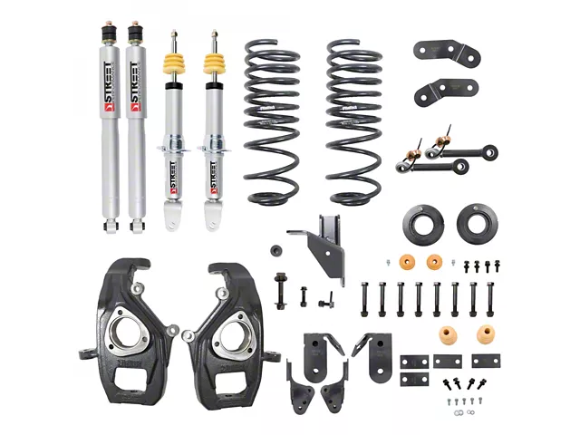 The front suspension includes our robust Belltech Street Performance struts. They are created with high-quality, multi-functional components that are built to last. Each strut features a large, 2” (50mm) damper body and 35mm independent rebound and compression valves. Together, these details keep oil cool and deliver precise, consistent damping throughout your journeys. Belltech uses a patented ring spacer design to offer height adjustability from 1” to -3” in half inch increments. We include spindles to complete the front end lowering with another -2” by bringing your wheels’ mounting position up higher and settling your vehicle closer to the ground.