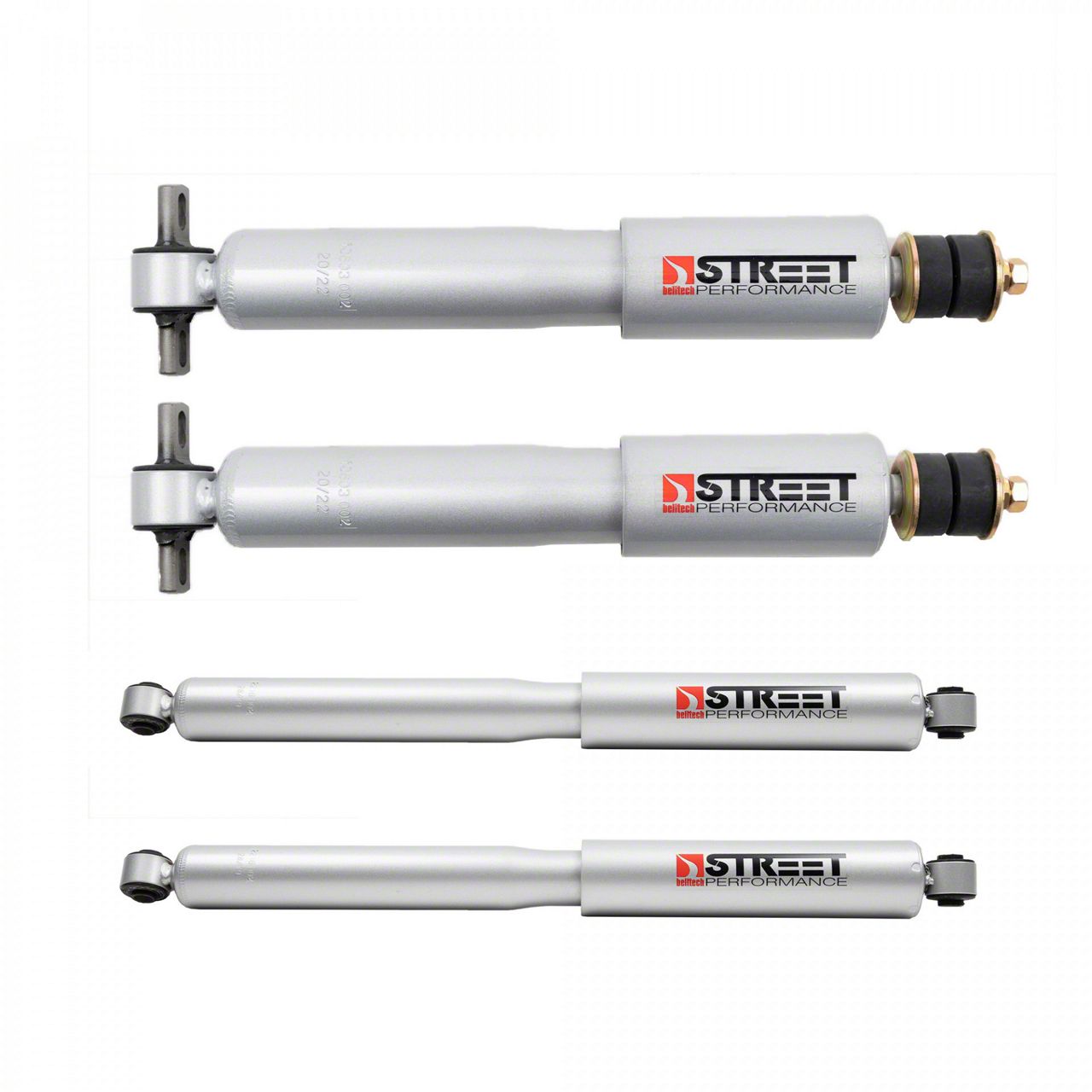 Cornering Prowess Unleashed. The Belltech Street Performance Front and Rear Shocks boast high-performance valving, a technology that plays a critical role in optimizing your vehicle's cornering capabilities. This innovative design ensures consistent damping across a wide range of driving conditions. Whether you're tackling a winding mountain pass or maneuvering through a busy city intersection, experience the superior performance that comes with these precision-tuned shocks. Take on every corner with confidence, knowing your RAM 1500 is ready to handle it all.