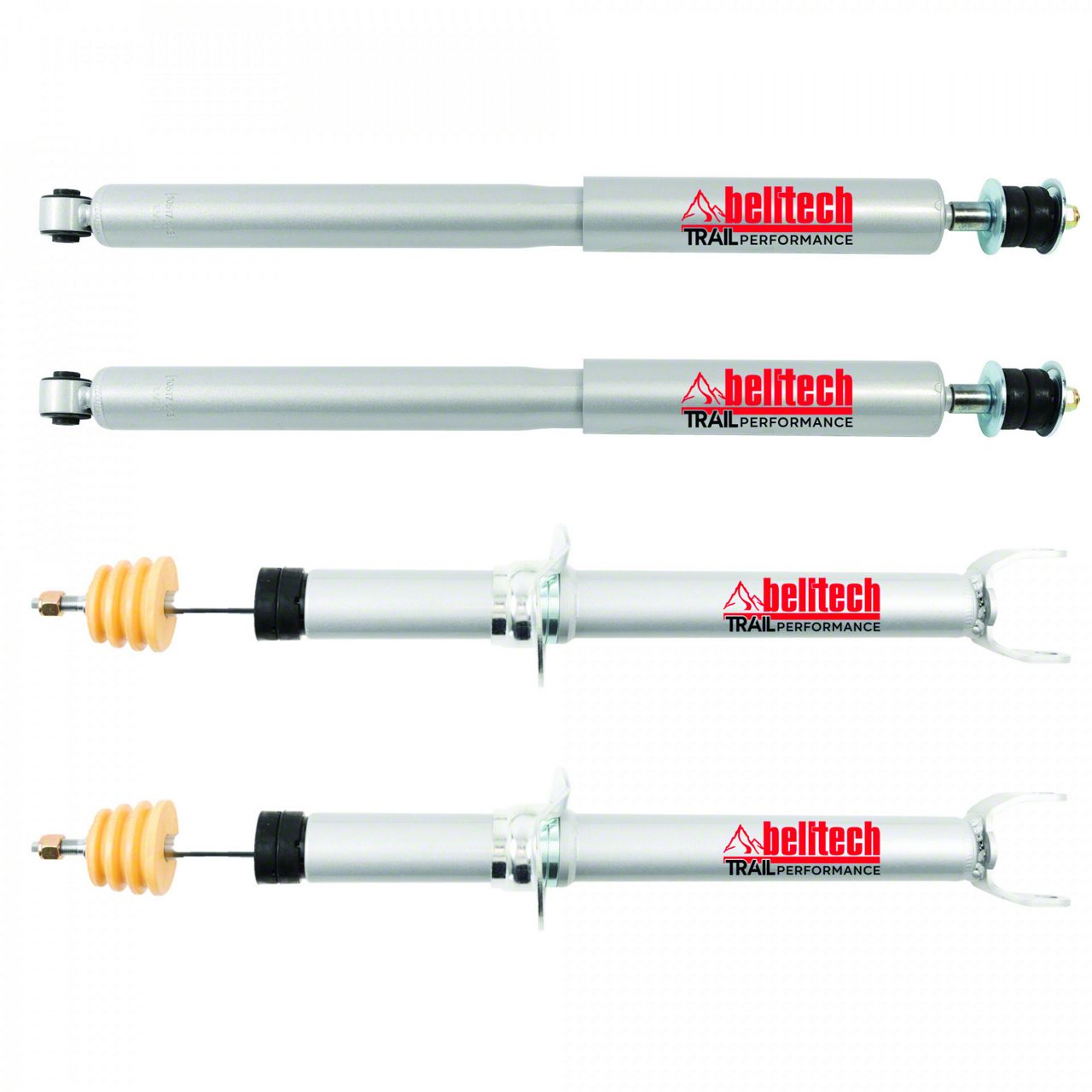 Height Lift and Performance Upgrade. Are you ready to take your off-road adventures to the next level? The Belltech Trail Performance Front and Rear Shocks 6 to 8-Inch Lift. These shocks are designed to provide superior ride quality with maximum comfort. This shock absorber's low-speed compression properties are in charge of reducing the pitch and roll, dive, and squat of your vehicle, keeping you comfortable and in control. Additionally, the "Progressive" rebound setting will maintain a smooth but stiff and controlled ride in conjunction with large, aggressive offroad tires.