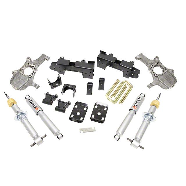 Improved Stance, Balance, and Handling. The Belltech 2 to 4-Inch Front / 6-Inch Rear Lowering Kit with Street Performance Shocks is the ideal lowering kit for enthusiasts who want to give their 4WD Sierra 1500 a lowered dynamic stance. The new height will not only give your truck a fiercer street look but will also deliver some impressive cornering capabilities.