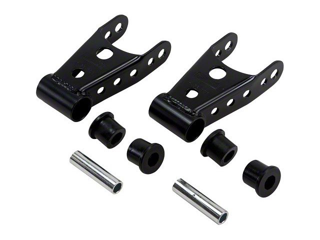 Built for Durability. These shackles will provide a long maintenance-free service with their die-stamped heavy-duty steel construction. The shackles also sport vulcanized rubber bushings, and a black powder coat ensures resistance to corrosion.