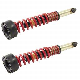 Durable and Compatible. This coil-over kit has been pre-assembled with matching components that have been quality tested for strength, reliability, and longevity. This kit includes coil springs, aluminum spring perches, progressive rate open cell bumps, and plastic dust boots.