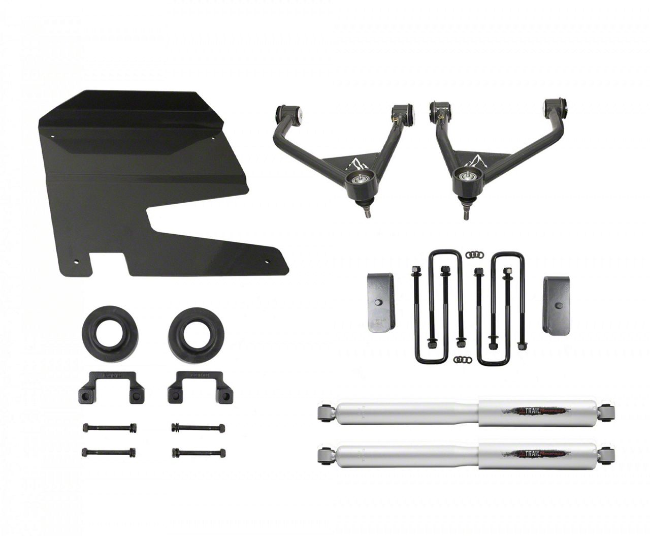 High-Quality Components. The Belltech Suspension Lift Kit is precision engineered to fit your vehicle perfectly for an easy installation and maximum performance. The kit also comes with a 1/4-inch-thick powder-coated skid plate that guards your driveline against debris, rocks, and other off-road elements. The high-grade hardware used in the kit ensures durability and longevity, so you can take on any terrain with confidence. Upgrade your vehicle with the Belltech 4-Inch Suspension Lift Kit and experience a smoother, more capable ride on and off the road.
