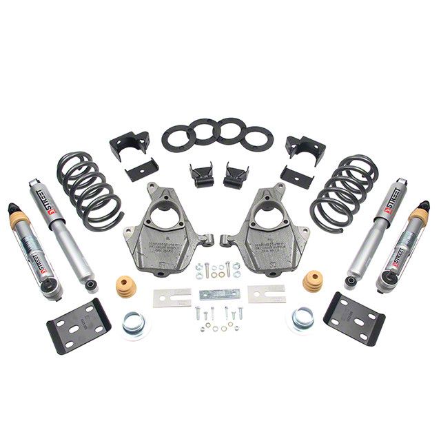 Aggressive Look. Give your truck an aggressive look and improved performance with this 3 to 4-Inch Front / 7-Inch Rear Lowering Kit with Street Performance Shocks from Belltech. It has been specially engineered to lower your truck’s center of gravity for extra stability in competitive driving conditions. This also gives your truck a more aggressive and classic truck appearance. This lowering kit also comes with all the bushings, spacers, and bump stops for a complete, hassle-free setup.
