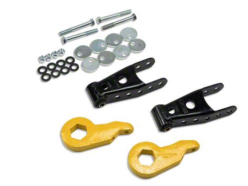 Simple Lowering for Maximum Performance. Drop down your truck without having to utilize shock absorbers at all with this Belltech lowering kit. It comes with a simple set of torsion bar keys, and lowering shackles to drop your truck between 1"" and 3"" overall. The kit goes on quickly and easily and will give you a nice even height adjustment that gives your truck a cool stance while letting it do things like utilize smaller wheels.