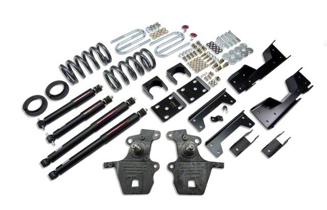 Low Rider Appeal. Give your truck a serious low-rider look with this capable Belltech 4-inch lowering kit. Imagine how cool your ride is going to look as you dip it down nearly to the ground. As the frame moves closer to the road you'll enjoy improved aerodynamics and a very cool looking truck. This kit uses spindles, an axle flip kit, and springs to lower the vehicle's height significantly. Each of the parts are made from rugged steel that's powder coated to last. The kit is simple to install and all the necessary hardware is included. Enjoy using smaller tires and the low-level look of your truck with this kit, just be aware that you'll have less ground clerance than before.