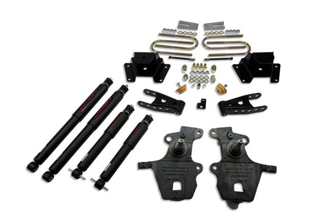 Get an Edgy Look. If you are unhappy with the way your F-150 sits as it is and you want to lower it, the Belltech Stage 2 2 in. Front / 4 in. Rear Lowering Kit w/ Nitro Drop 2 Shocks is perfect. You will receive a two-inch drop in the front and a four-inch drop in the rear to provide you with that edgy look you have always wanted. This kit will allow you to stick out from the crowd and even help your truck become quicker and stealthy on the track.