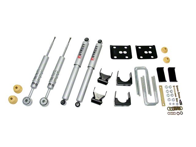 Street Performance Ready. If you want to give your truck that edgy street look and feel, consider the Belltech Stage 3 2 in. or 3 in. Front / 4 in. Rear Lowering Kit w/ Street Performance Shocks. This kit comes with the performance shocks you need to enjoy a smooth ride, no matter how low your truck sits to the ground. You will receive a modest two to three-inch drop in the front of your truck and a four-inch drop in the rear of the truck. This kit comes with a stage three solution that will help you perform best out on the track and street.