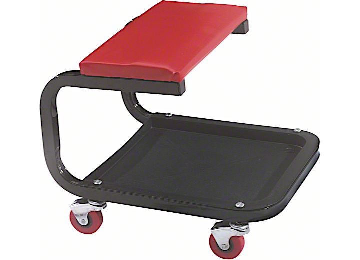 Description. This padded rolling work seat features an under-seat tray. Maximum comfort, maximum convenience.