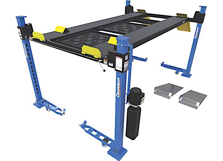 Description. Vehicle Lift; 9K Capacity; 4-Post; High Rise Extlength; Inclcaster Kit, Drip Trays And Aluramps