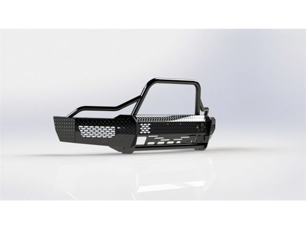 What we call the pre-runner bumpers is yet another step up in protection and utility. Designed for maximum ground clearance, excellent approach angles, and minimal weight, makes them perfect for desert off-roading. These bumpers typically use a tubular or hybrid steel construction and are mounted tightly to the frame. The design prevents the bumper from hitting obstacles before the tires do, allowing the wheels to climb up and over terrain instead of getting hung up on the bumper. They’re lightweight, which is another advantage as it reduces stress on the suspension compared to heavier total protection bumpers. Like the options above, many come with provisions for auxiliary lighting or recovery options. More often than not, they also feature upper bars or light mounts across the grille. The Addictive Desert Designs Honeybadger front bumper is a prime example. Built with a durable steel construction including an upper protective bar, it can be fitted with recovery gear and additional lighting, including a 20” and 40” light bar, as well as 10” cube light bars on the sides. A good alternative is the Fab Fours Vengeance Front Bumper with Pre-Runner Guard.