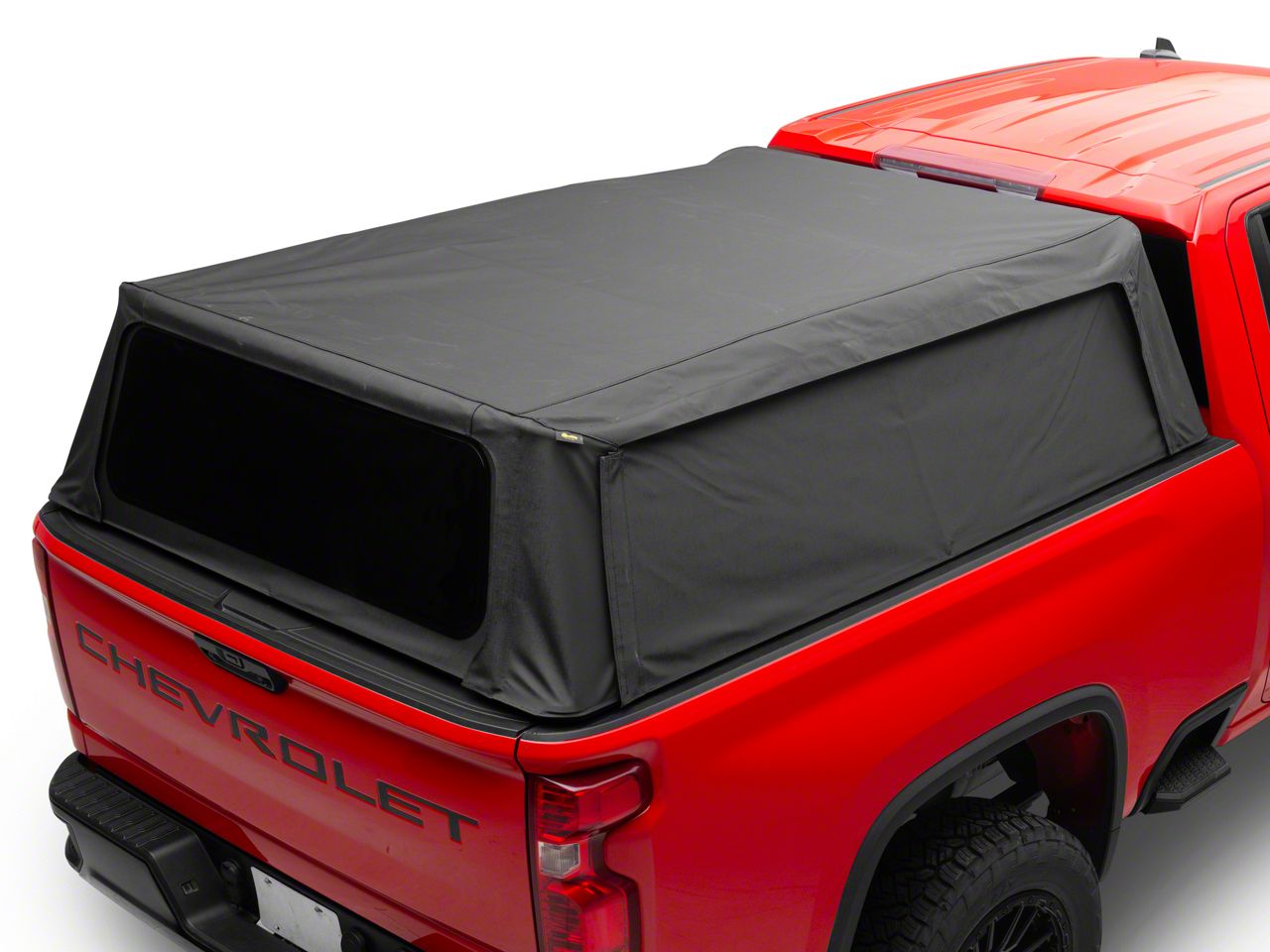 Black Diamond. Featuring a sleek black diamond color top made from high-quality sailcloth, this Supertop not only looks great but also offers excellent durability and weather resistance. Paired with black powder-coated frame clamps, it's a perfect fit for your Silverado 2500 HD with a 6.90-foot standard box.