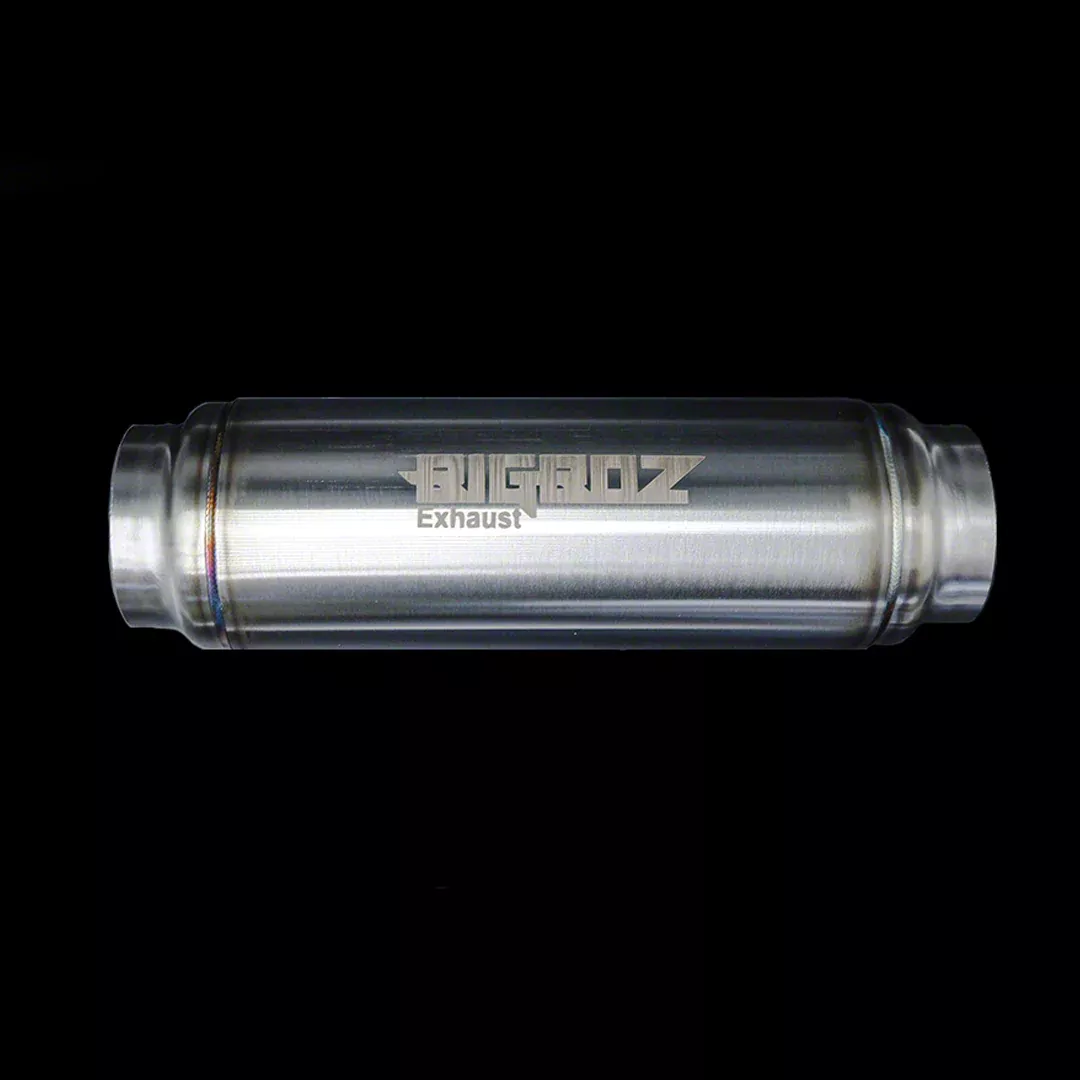 Straight-Cut Tip. The Bigboz Exhaust 4 Performance Muffler is a high-quality muffler that's designed to enhance your vehicle's sound and performance. With its straight-cut tip and laser-engraved logo, this muffler is stylish and functional. It's constructed with a 3-inch inlet and outlet diameter, creating a deeper, louder, and meaner vehicle sound that's sure to turn heads.