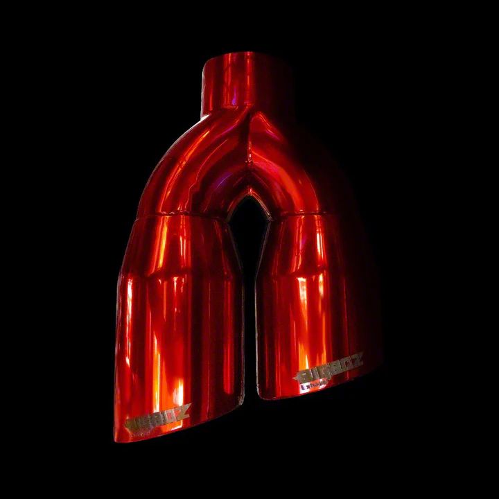 Application. This Bigboz Exhaust Universal Double Wall Lightning Style Exhaust Tip; 4-Inch; Candy Red features a universal fit that is designed for use with 3-Inch Tailpipes. Sold individually.