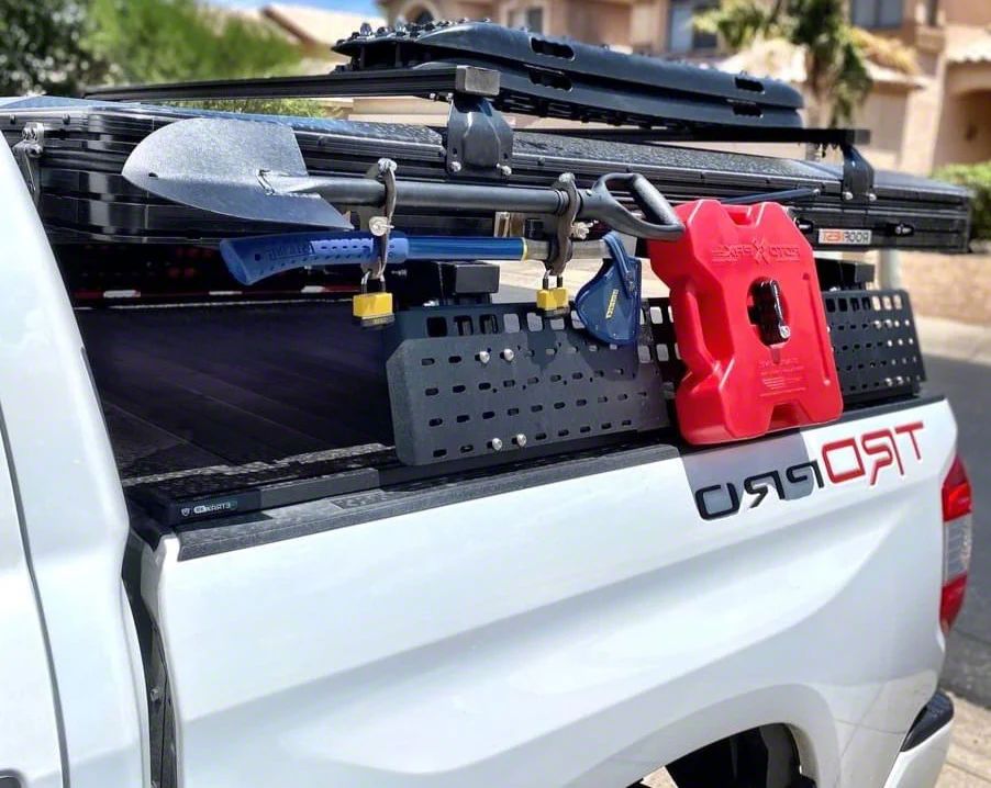 The design allows for flexibility of both the bar placement along the length of the bed, and the height of the Mid Height Molle panel