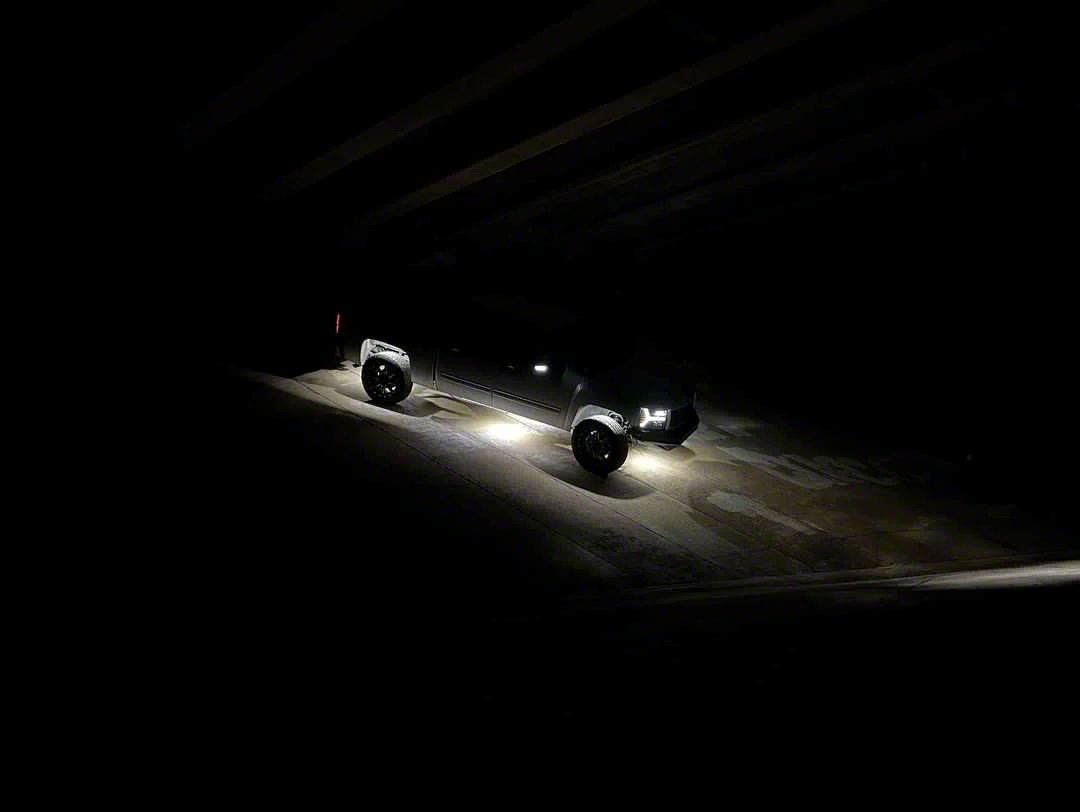 Versatile LED Rock Lighting System. The Black Flag Lighting 36 LED Chip Pure White Rock Lights with Extensions provide brilliant underbody illumination for show vehicles, daily drivers, and off-road rigs. With 36 pure white LED chips per pod and magnetic mounts for quick placement, this eight-piece kit enhances visibility and style with remote, app, or switch control options and six built-in flashing modes.