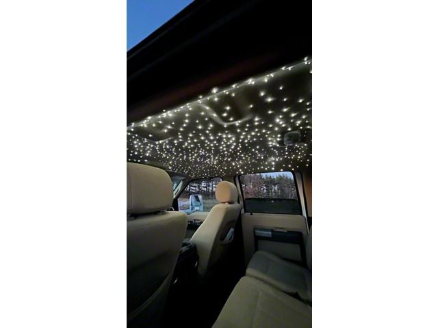 We are excited to offer our Starlight Headliner! True RGB and Pure White. Turn the Twinkle affect on and off to have your stars glisten and pop! Preloaded affects and color changes built in! Bluetooth connection & remote control.ÂÂ
