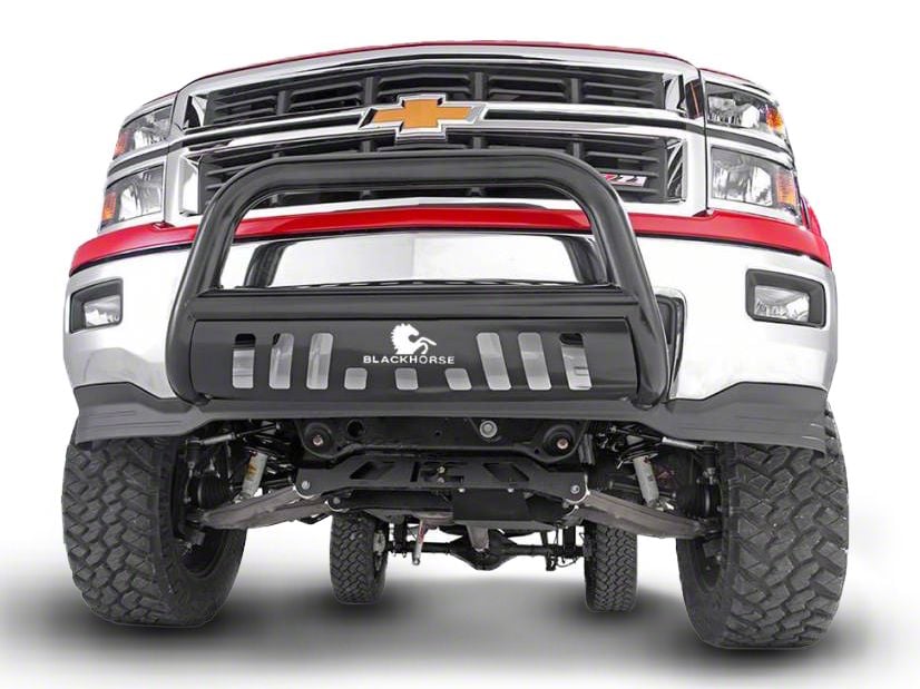 Strong Front-End Protection. This Bull Bar is designed to provide strong front-end protection with premium styling. It features a high-quality, heavy-duty bull bar with skid plate that’s sturdily built to protect your truck’s front end from trail hazards. Additionally, the style and black powder-coat gives it a visual appeal that’s at home either on the road or out on the trail.