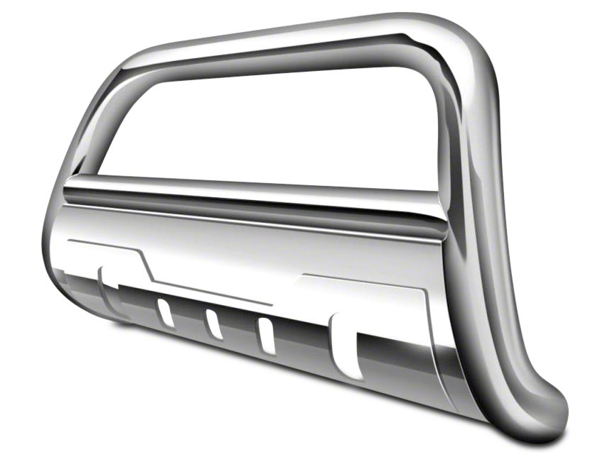 Heavy-Duty Construction. In order to be an effective barrier protecting the front end of your rig, this bull bar has to be heavy-duty. That’s why it is made out steel. The steel is formed into 3.5 inch diameter tubing to barricade your front end from threats. A removable skid plate is integrated and made out of durable stainless steel. The bull bar and skid plate are polished for a cool look and in order to protect against rust and corrosion.