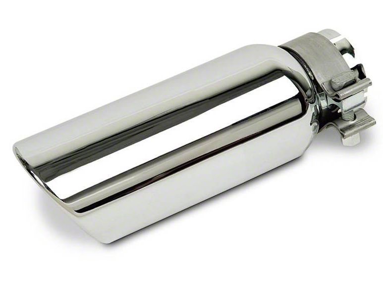 Noteworthy Exhaust Finisher. These 4x10 inch Exhaust Tip - Stainless Steel - 2.75 in Connection is an attractive addition to polish off the tip of your exhaust, and sure to get the attention your truck deserves.