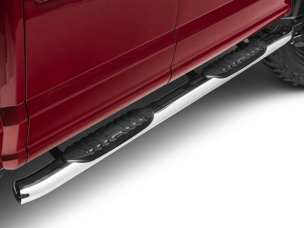 Heavy Duty Construction. Made from 5” oval stainless steel, these Extreme Side Step Bars are designed to stand up to anything. The non-slip pads provide safety in any weather and the high-shine polished finish improves the look of your F-150.