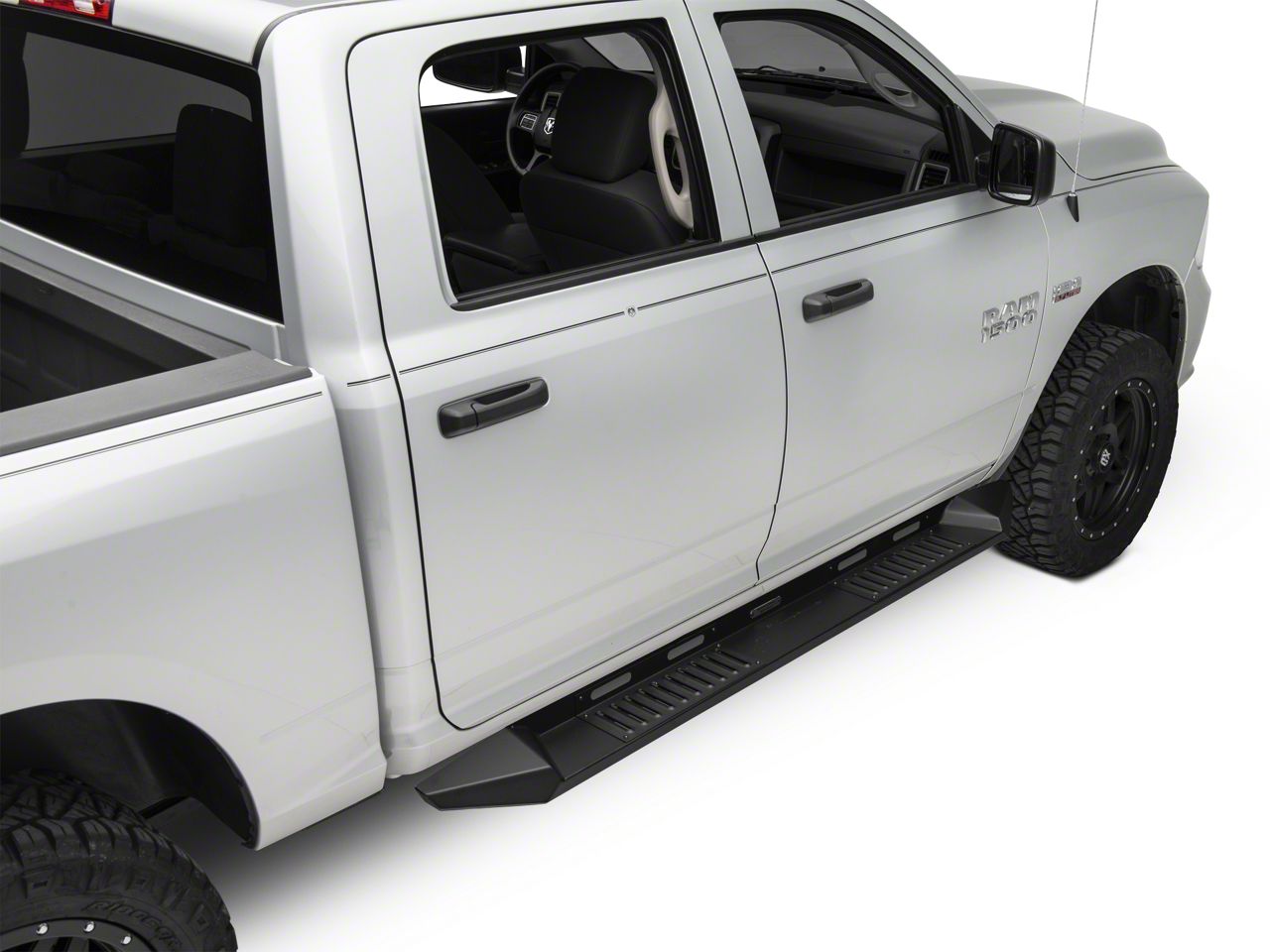 Modern, Up-to-Date Running Board Option. These Armour Running Boards will outfit your 2009-2018 Ram 1500 crew cab truck with a pair of close-fitting running boards. The boards are made from sheet steel and feature a slick-looking semi-gloss powder-coat finish. They’ve got aluminum step plates whose open channels ensure that the boards stay clear of water, snow, slush, mud, and other liquids and semi-liquids.