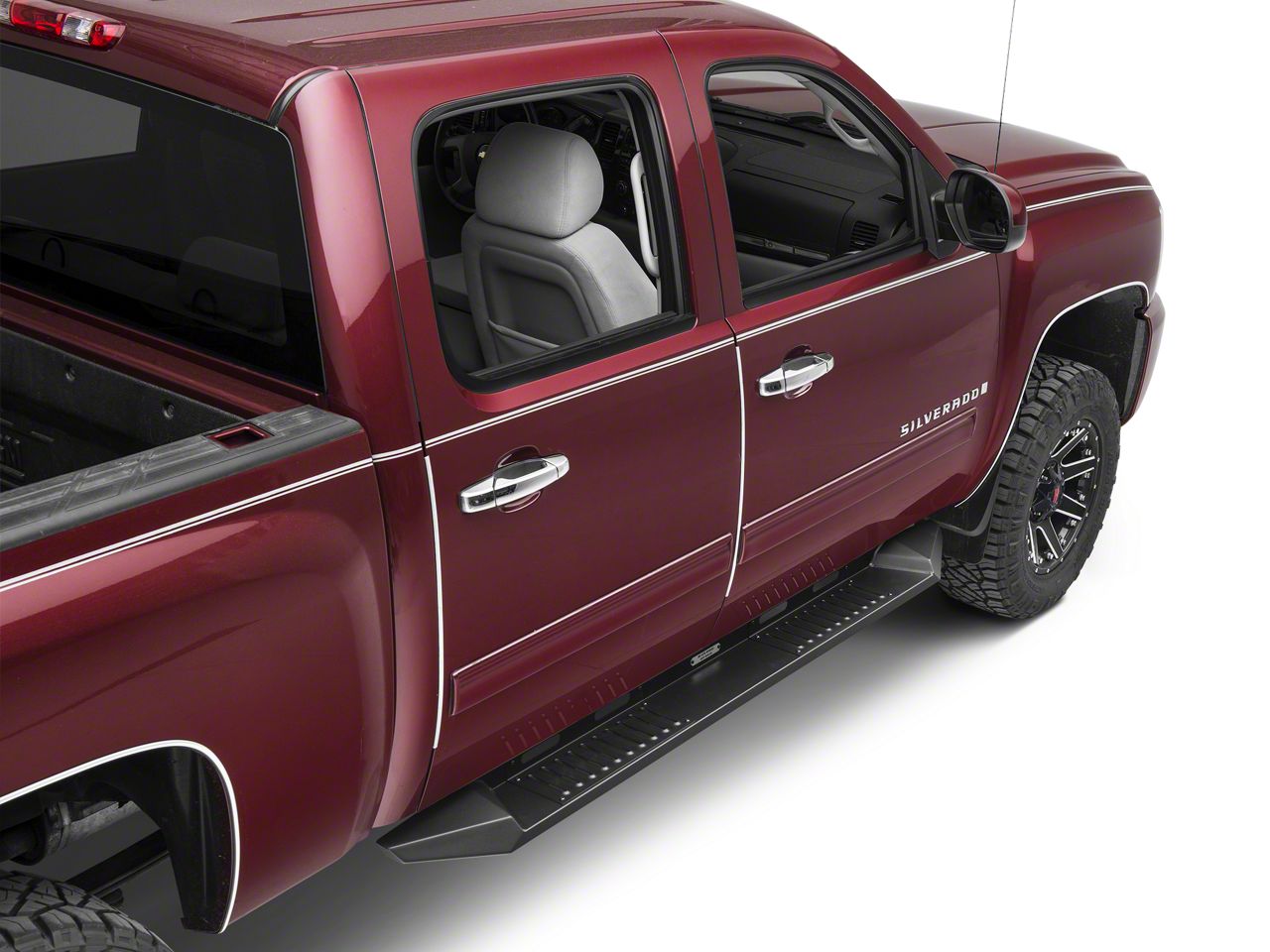 Application. These black Armour Running Boards are designed to fit all 2014-2018 Chevy Silverado Crew Cabs.